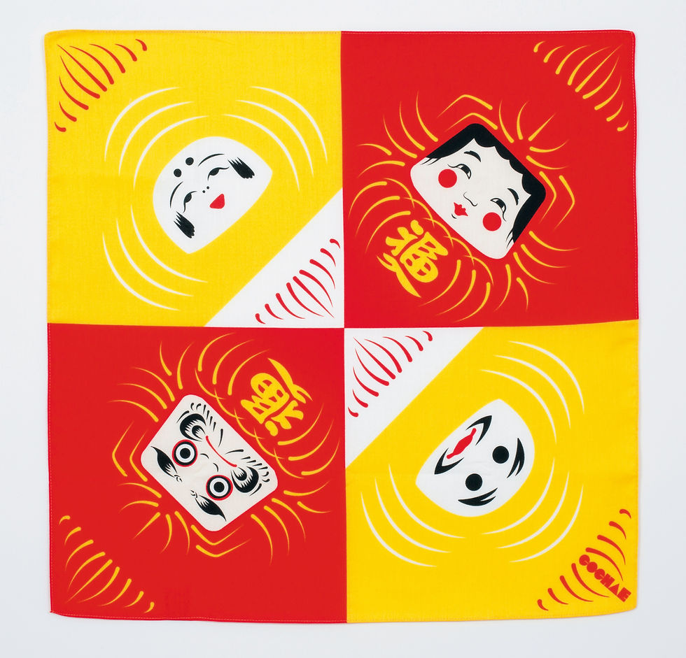 Furoshiki S: Isamonyo, Chrysanthemum Red/ Blue